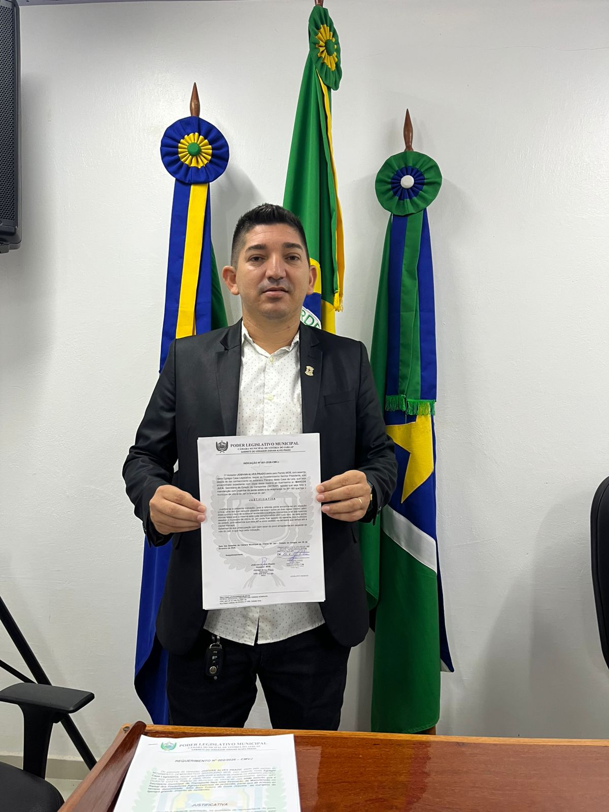 Na manhã desta sexta (27), o vereador Josivan Alves Prado – MDB apresentou em plenários dois requerimentos e uma indicação. O requerimento de Nº 001/2026-CMVJ, solicitando que seja feito manutenção na iluminação pública nos seguintes locais: posteamento ao lado da nova arena denominada Ronicley Macedo Barroso (Tieta), passarela barrosão no bairro São Pedro e na arena sintética da Mina no Município de Vitória do Jari-Ap. O segundo requerimento de nº de Nº 002/2026 – CMVJ. Solicita que a Secretaria Municipal de Transporte faça uma execução de manutenção no Ramal dos Produtores Agroextrativista de Jarilândia, parte que da acesso ao terreno denominado Sítio Bom Futuro da Dona Jesuína as margens do Igarapé Grande, Distrito de Jarilândia. A indicação de Nº 001/2026-CMVJ, solicita que a Secretaria de Estado e Transporte (SETRAP) faça a manutenção com urgência da ponte sobre o rio Arapiranga na AP-160 que liga o Município de Vitória do Jarí a Laranjal do Jarí.